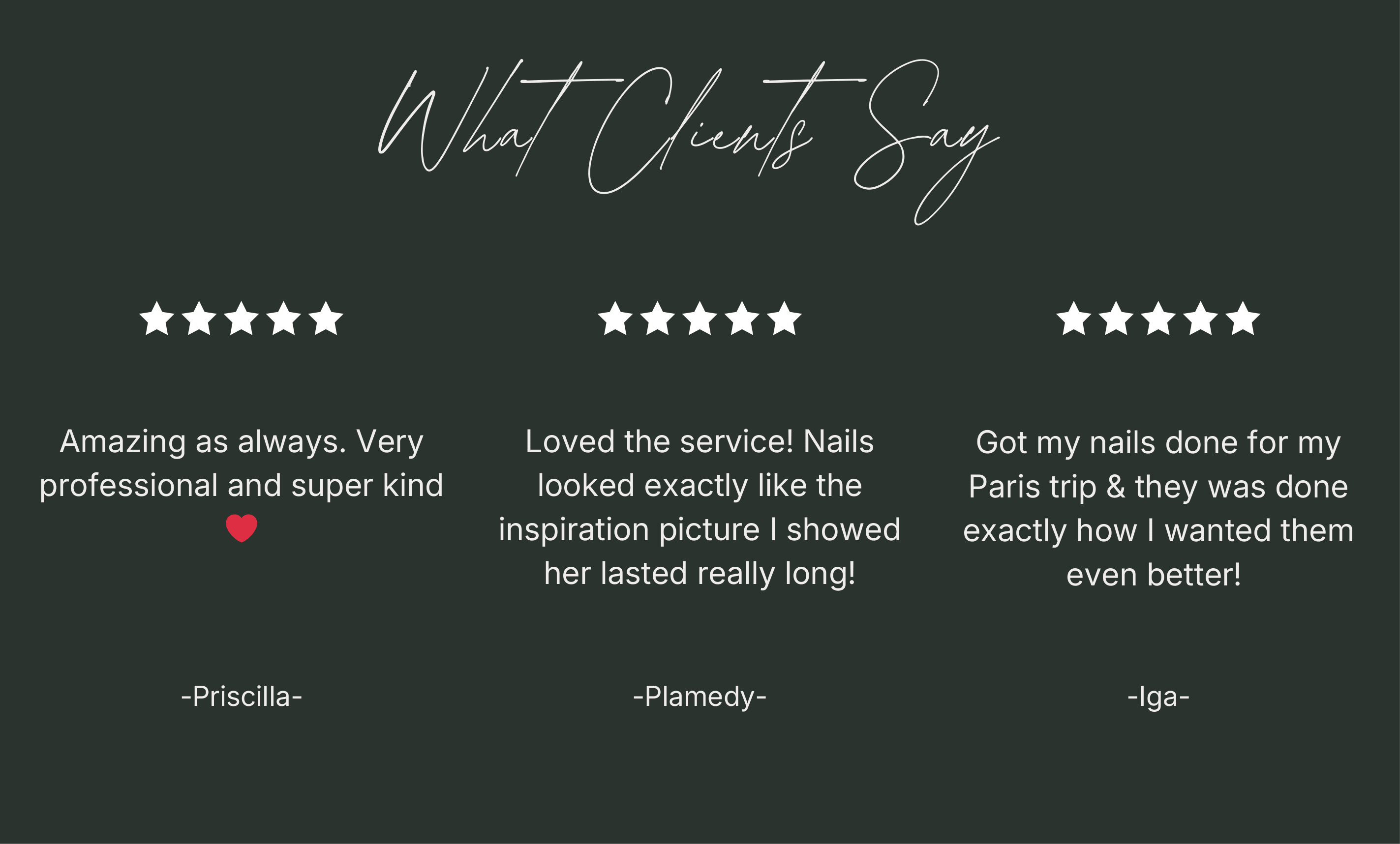 Any existing acrylic or gel polish must be removed prior to your appointment.
